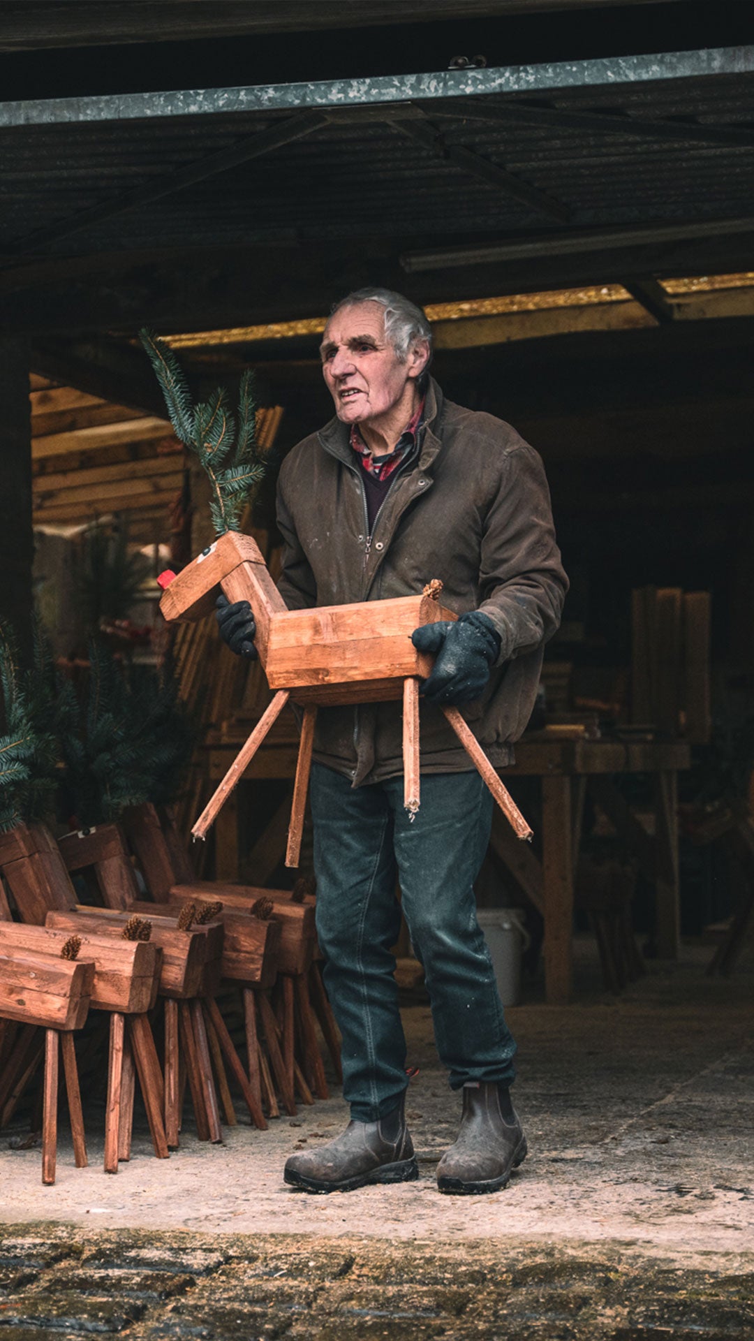 For the last 12 months, Gordon has been busy hand-making all 100 of the LANXY Reindeer that were mysteriously dropped around Whalley last night. Typically only making around a dozen each year for friends and family, Gordon kindly put a lot of hard work into this special order, which he has sustainably made by hand using wood, sticks, logs, pinecones and anything else he could forage and upcycle from around his workshop, located in the Ribble Valley, Lancashire.