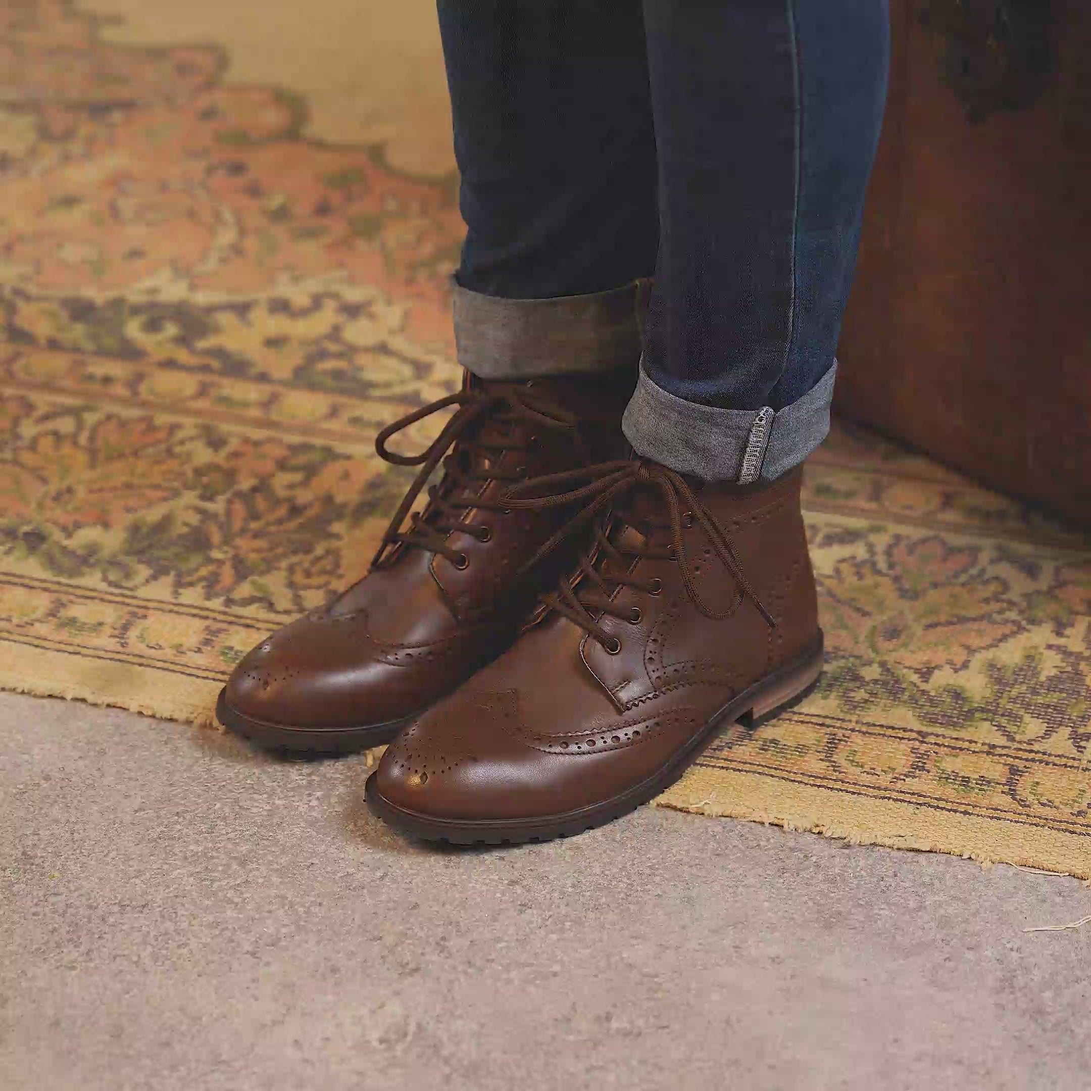 The Chipping Mahogany & Khaki are high grade genuine leather boots and are part of our women's 1985 collection. These brown derby brogue boots are built on our LX-U last and made with a cemented construction.