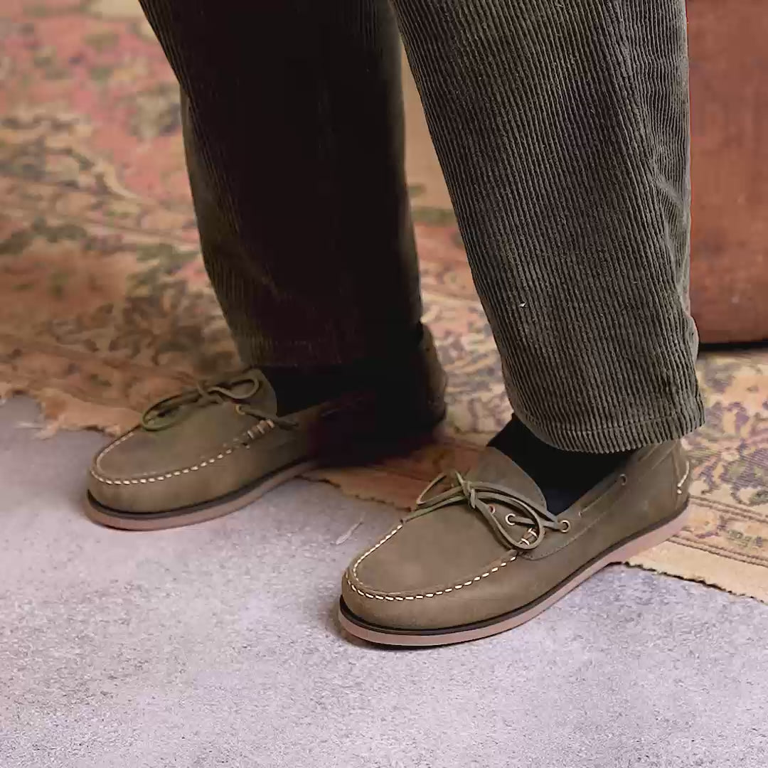 The Farndon Khaki are high grade genuine suede deck shoes and are part of our men's Casual range. These green slip-on deck shoes are built on our LX-2F last and made with a moccasin construction.