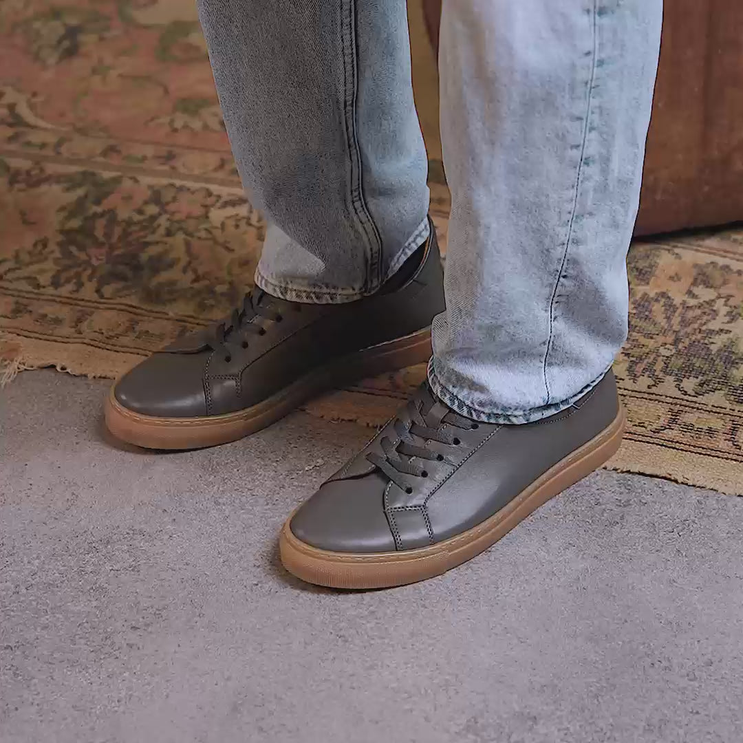 A sleek and versatile sneaker for day-to-day wear. Ancoats Schist, a grey sneaker, is a part of our men's made in England sneaker collection. With their minimalistic design, sidewall-stitched cupsole, and natural calf-leather lining, these sneakers are built for life's constant motion where comfort meets everyday versatility.