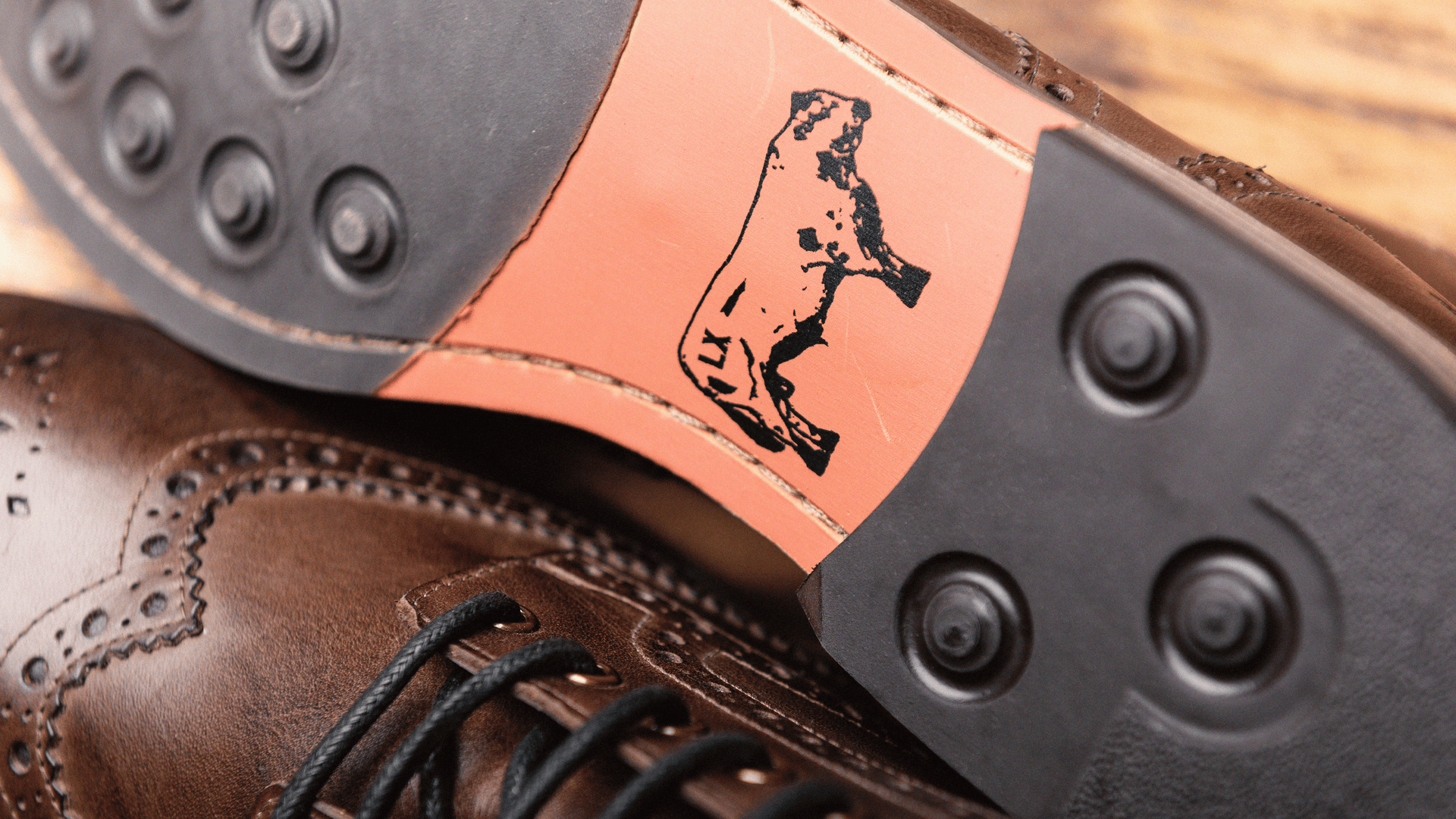 The bull appears on the sole of all our men's shoes. Like LANX the British White breed originates from Whalley in Lancashire, England.