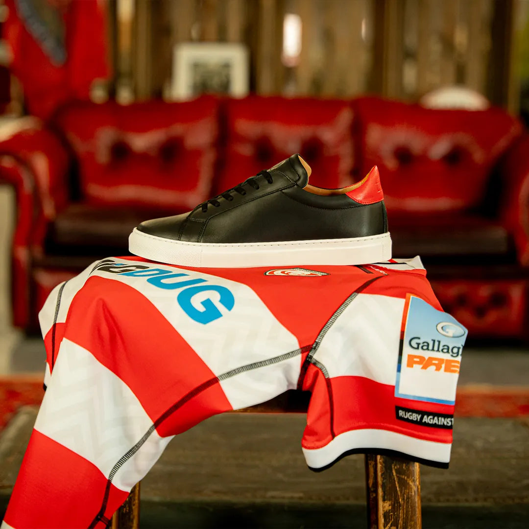 To celebrate our collaboration, we have designed two brand new LANX styles featuring the Gloucester Rugby emblems. We have designed an Ancoats sneaker; featuring Gloucester Rugby's logo on the sole and heel, and a unique red padded heel collar, and a Mitton chelsea boot; that features Gloucester Rugby's logo on the sole and heel. These styles are perfect for a match day at Kingsholm Stadium, or you’re down at the pub cheering Gloucester on.