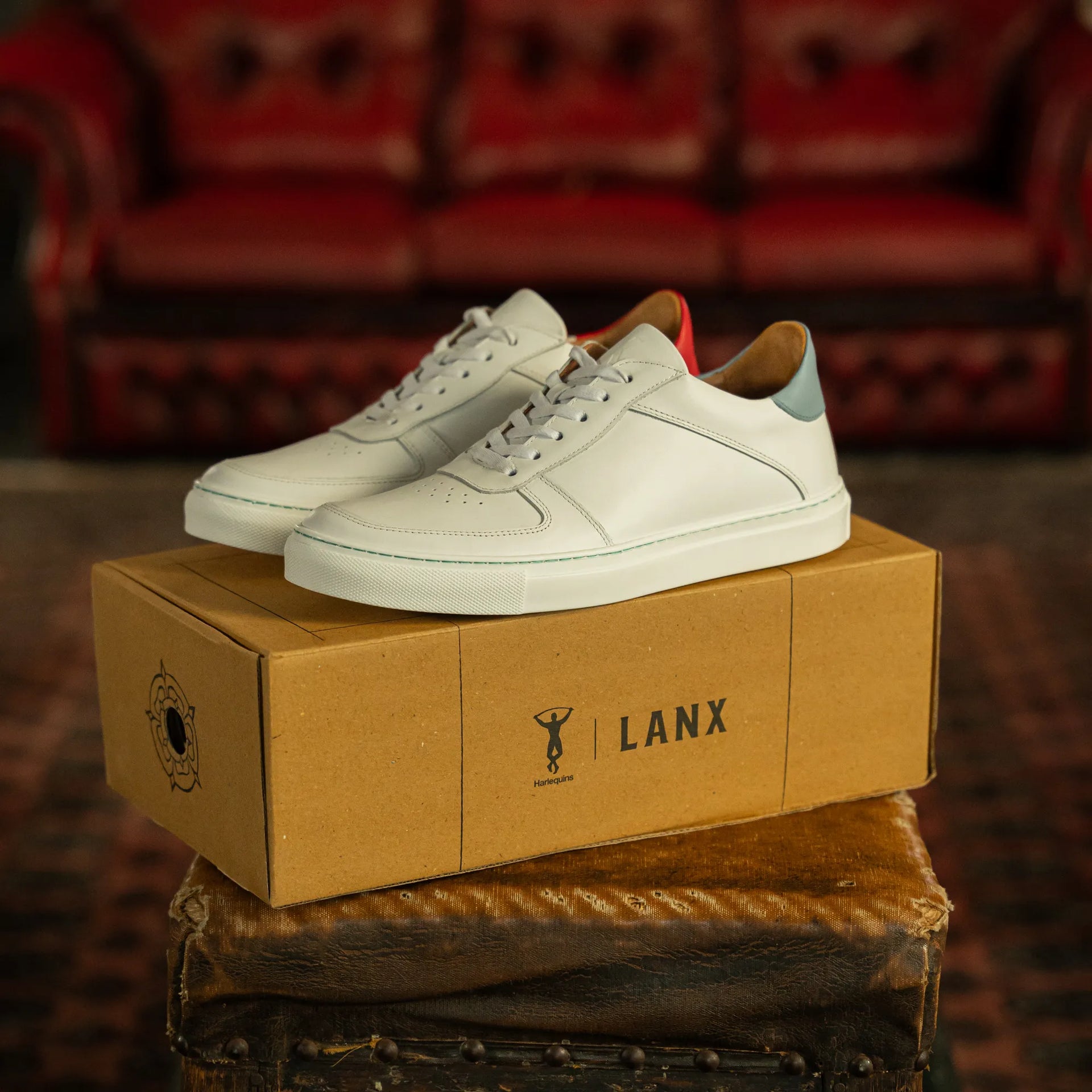 For the 25/26 season, LANX and Harlequins have collaborated to create 2 bespoke footwear styles for men and women. We have created classic white leather sneakers featuring the Harlequins logo on the sole and heel, and a unique red and blue padded heel collar. These sneakers are perfect for a matchday at the stoop or for cheering Quins on down at the pub.