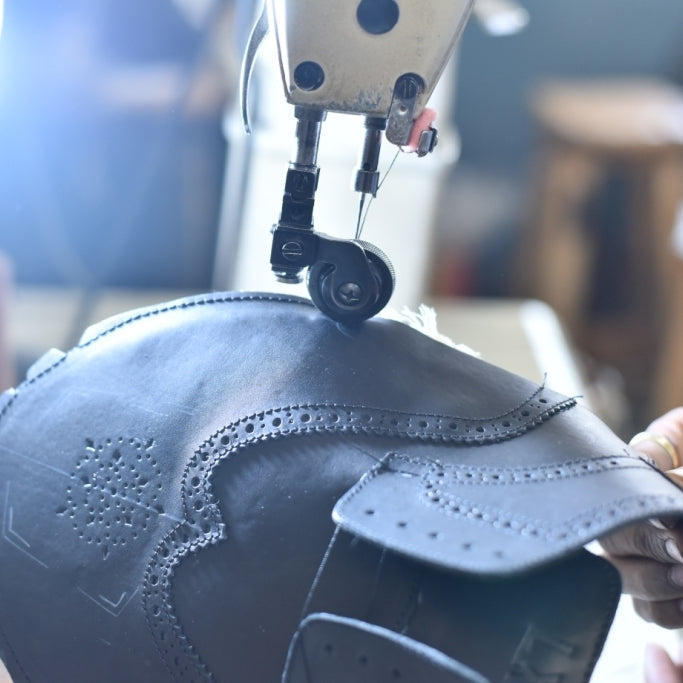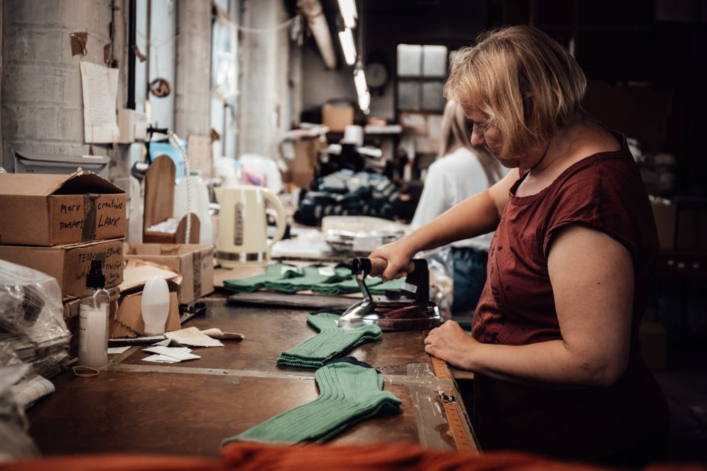 to work with a fantastic network of small independent partners who supply us with various; components, leathers, footwear, socks and clothing. Most are located in the UK and a few we have to jump on a plane to visit. Some of our partners are even located in the same village as us and pop round when they've run out of milk.