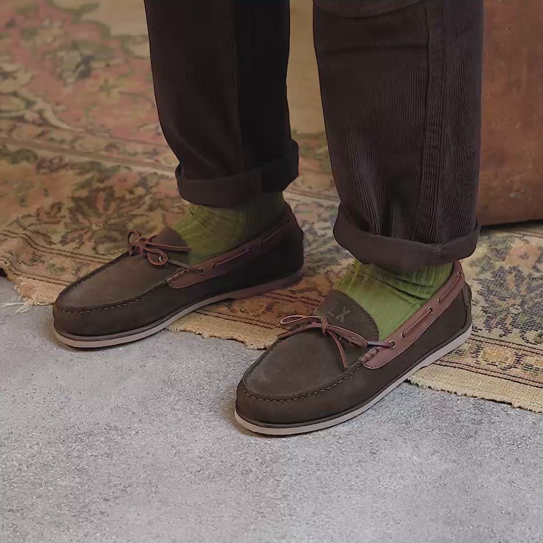 The Farndon Brown are high grade genuine suede deck shoes and are part of our men's Casual range. These brown slip-on deck shoes are built on our LX-2F last and made with a moccasin construction.